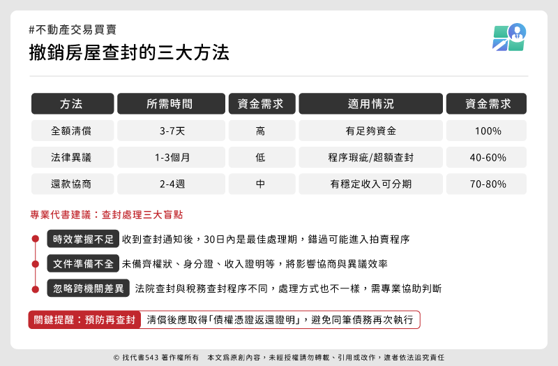 1. 時效掌握:收到查封通知後「30日內」是最佳處理期